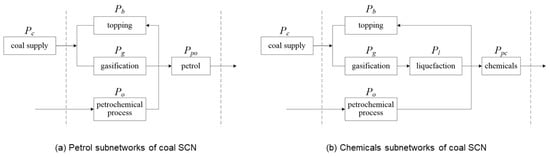 Taking the coal industry as shown in Figure 2 as an example, the SCN model was established as in Figure 7, in which the petrochemical industry is the system competitor. The coal industry SCN was analyzed based on the methods outlined in Section 2.