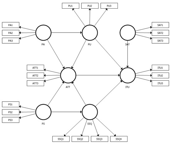 Satisfaction (SAT)—User satisfaction with a particular service or system is positively related to the desire to use the service [23]. The proposed hypothesis is: