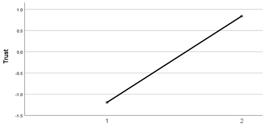 The effect of firm type on trust (T3). Note: 1 = manufacturing; 2 = services.