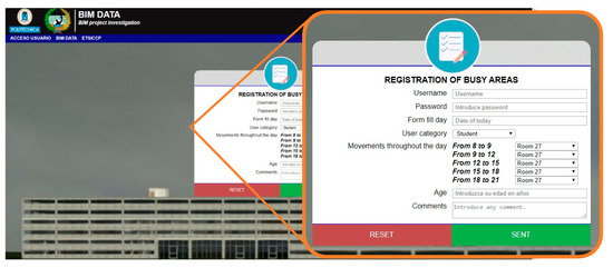 BIM methodology has demonstrated multiple benefits either in all project phases or in many kinds of infrastructure, such as bridges, tunnels, or buildings. With the clear advantage detailed by many researchers of improving the flow of information through all the entities related to the project, especially in complex infrastructures such hospitals, University Campuses and Airports, this feature links directly with the current pandemic situation, where data flow for all the persons involved in a building requires fast and detailed information. In this way, the BIM DATA software project developed in this research provides real data information for room occupancy and areas with a high confluence of people. Moreover, Spanish regulations for the new academic year 2020–2021 promotes semi on-site teaching classes that could be managed by BIM system software so that students could reserve seats for daily classes while maintaining the safety distance between them.