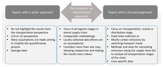 There are no studies focusing on detailing and comparing the emissions from all transportation activities that are mainly seeking to subsidize actions and policies aimed at mitigating those stages. In this context, Figure 1 summarizes the characteristics of the studies on this issue, highlighting the contributions of our paper.