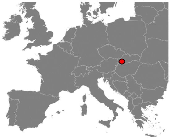 The calculation was performed for Slovakia, the capital city of Bratislava (Figure 2 and Table 2). We virtually used, for a general administrative building, an air-conditioning unit with a capacity of 24,000 m3/h with an accessible air-conditioning pipe measuring 1600 × 700 mm. The unit has a circulation and recuperation section and is designed so that the average air flow velocity in the accessible air duct is 6 m/s and the length. Available for installation is a free length of air duct 2 m.