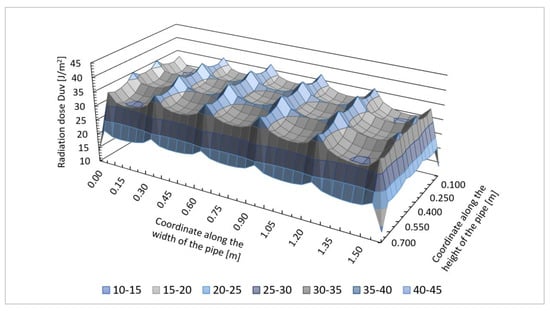 The irradiation dose is the result of the time t [s] of the pathogen’s movement in the radiation field and the radiation intensity I [W/m2]