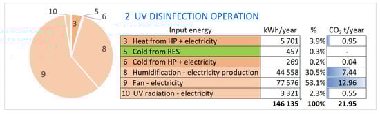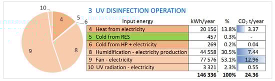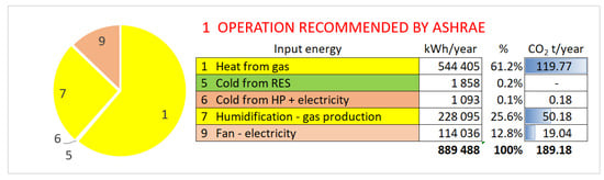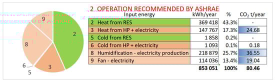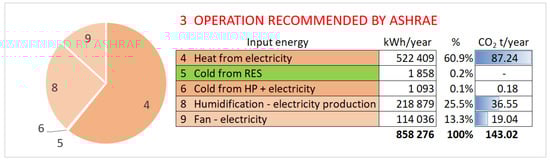 Total balance of energy and CO2 emissions by variants and energies used, including humidification, is listed in Figure 23.