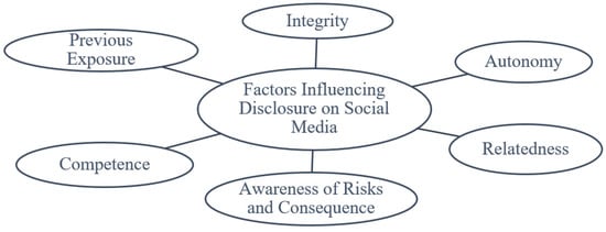 Moreover, Hoffmann et al. identified a cognitive coping mechanism that enables users to overcome or ignore privacy concerns and engage in online information self-disclosure [89]. Also the integrity and openness of social media platform can influence users’ information disclosure behavior [90]. Trust of social media platforms is therefore predicated on integrity and openness. We therefore argue that, the key factors that influence personal information disclosure on social media are: competence, relatedness, autonomy, integrity and awareness of the risks and its consequence as illustrated in Figure 3. The methodology employed to achieve the research objectives are described next.