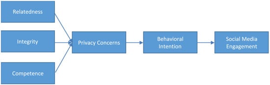 The study has revealed that relatedness of users, integrity of users on the platform and competence of users are the key antecedents to privacy concerns on social media. In other words, perception of lack of integrity and low user competence have the tendency to lower the level of the trustworthiness of users [90]. Similarly, previous exposures and relationships can influence their trustworthiness. Figure 5 clearly shows that relatedness, integrity and competence influence privacy concerns, which then informs the behavioral intention of individuals on social media and consequently, their actual social media engagements with respect to information disclosure.