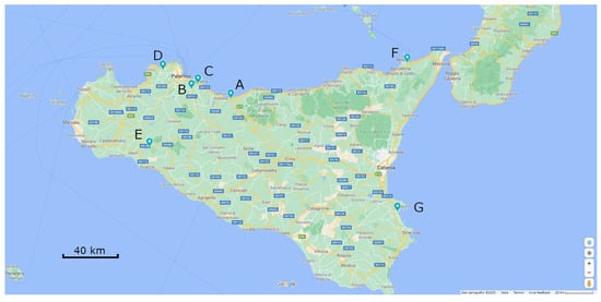- Google Maps. Available online: https://www.google.com/maps/place/Sicily (accessed on 30 November 2020).