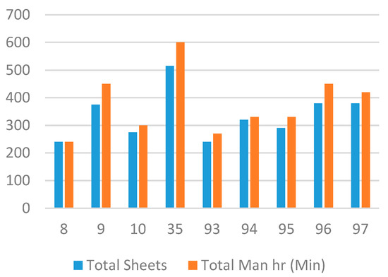 Figure 4. Total plasterboard sheets and man hour (min) per plot.