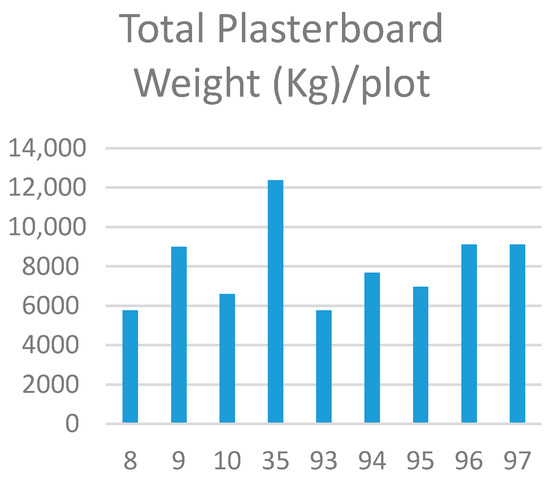 However, managing process efficiency related to tasks involving the loading of thermal-insulated plasterboards to floor decks, moving and handling, and fitting windows and doors into place by two operatives showed a significant rise in manual handling. The manual loading by two operatives to the deck of the ground and first floor of the houses for joinery first fix exacerbated issues of manual handling, which could increase the likelihood of musculoskeletal disorders (MSDs), [53]. Two operatives manually lifted a minimum of 240 and a maximum of 515 sheets of plasterboards (24 kg per sheet) for the different house types. This amounts to a minimum lift of 5760 kg and a maximum lift of 12,360 kg of thermal-insulated plasterboards without any mechanical assistance; see Table 2. The Manual Handling Operations Regulations 1992 states that that if, “so far as is reasonably practicable”, handling the load cannot be avoided, then consideration should be given to whether the lifting operation can be either automated or mechanized to eliminate the manual aspect of the handling. The loading of the thermal-insulated plasterboards to the floor decks of the houses slowed down the workflow and negatively impacted the process efficiency and the speed of installing the fixtures and compromised safety practices, with the potential for musculoskeletal disorder cases [38,39]. This suggests that joint management systems [25] that are integrated with operational and safety management systems to potentially improve safety, process efficiency, and productivity were not adequately considered for the loading of the thermal-insulated plasterboards to the floor decks for installation. Based on the number of sheets and total weight of the thermal-insulated plasterboards lifted by two operatives, as shown in Figure 4 and Figure 5, it can be inferred that adequate risk assessments regarding the perceived MSD risks and the vulnerabilities of the two workers were not considered. It is imperative to design-out such hazardous manual handling operations to prevent workers from manually moving and lifting large volumes of thermal-insulated plasterboards or adopt an automated or mechanized process with a suitable and sufficient risk assessment for such repetitive tasks.