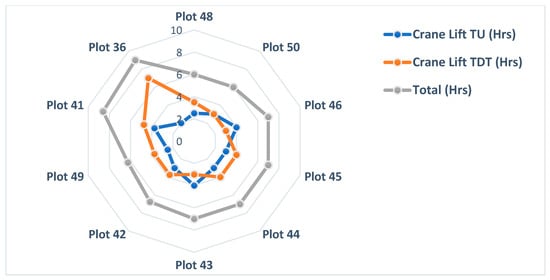 Figure 6. Total crane usage per plot: Total Uptime(TU)/Downtime (TDT).