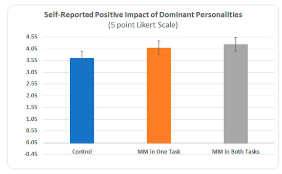 Mean self-reported score for the positive impact of dominant personalities on a meeting as a function of exposure to the Meeting Mediator.
