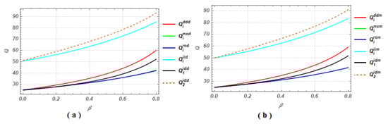 There will always have a symmetric information about cost, the green quality level and demand parameters between two GSC members [48,50]. For the reminder of the study, we assume that and , respectively. Two conditions not only ensure that there must be a threshold for the investment efficiency limits of each manufacturer’s green technology investment, but conditions are sufficient for many subsequent analytical results related to the existence of optimal decision in ten scenarios. In addition, wholesale prices, green quality levels, retail prices, and individual and total GSC profits remain positive under these conditions.