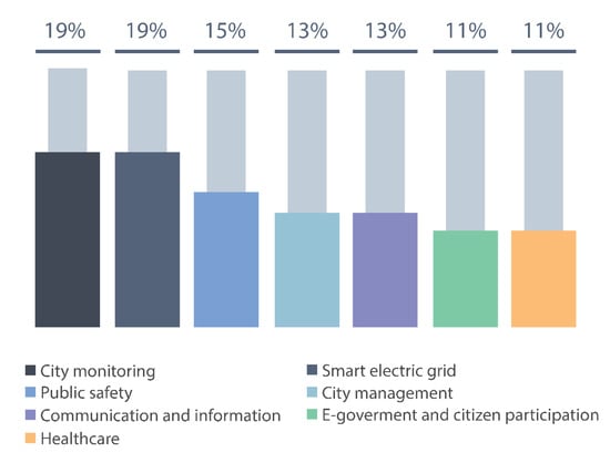 The methodological proposal of this article, which includes identification, classification, and analysis in our case of smart city domains and services that require the methodological advance of AI, was used by Lee et al. [] to evaluate exploitation level of services in different domains in the cities of Seoul and San Francisco.