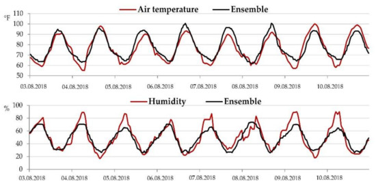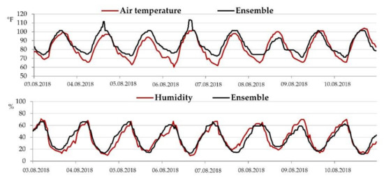 Time series of air temperature and humidity for California 2 (DF 5).