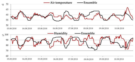 Time series of air temperature and humidity for California 1 (DF 5).