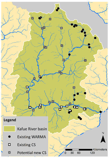 Proposed locations for new FWW monitoring in the Kafue River Basin, Zambia (Data source: [18]).