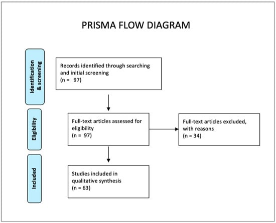 We initially identified 97 articles, which were screened to check whether the term “circular economy” was included (identification and screening phase). The initial search returned also articles that were marginally connected to the circular economy (i.e., the term only appeared in the reference list or was used in a sentence for which the circular economy was not a central theme). To filter out these articles, two of the authors scanned the full text of all the articles retrieved (eligibility assessment phase) and decided to exclude 34 of them, resulting in a final sample of 63 articles. These articles were independently examined by two of the authors of this review, who produced a table in which the bibliographic data and the core content of each article were reported and summarized. We enclose as an appendix a file containing bibliographic information of the articles reviewed.