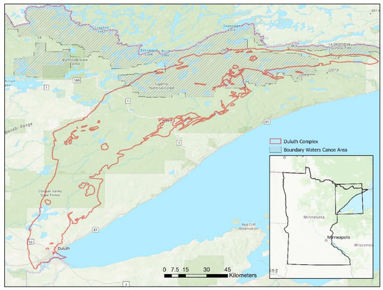 In the northeastern corner of Minnesota, two of the state’s most iconic symbols, mining and pristine wilderness, are on a collision course. At the center of the debate is the Duluth Complex, a 1.1 billion year old intrusive component of the Midcontinent Rift System, that is considered by many to be the world’s largest undeveloped deposit of copper-nickel and precious metals (Cu-Ni-PGE) [1,2] (Figure 1). Although the region has a long history of iron ore mining, copper-nickel mining is a new type of endeavor, with new economic possibilities and environmental concerns. Proponents suggest that mining can be accomplished in an environmentally benign manner, and in the process create nearly 1000 jobs and $500 million in economic benefits annually [3]. Opponents counter that the tourism and recreation industry in the region already provide nearly 18,000 jobs and bring over $900 million in economic benefits annually [4], and that mining will permanently impair the regions environment. Of particular concern is the potential impact to the Boundary Waters Canoe Area, the most popular Wilderness Area in the United States, with 250,000 annual visitors [5]. As such, the Cu-Ni-PGE debate and its narrative in northeastern Minnesota follows the traditional discourse of environmental degradation vs. economic stability, or jobs vs. the environment [6,7].