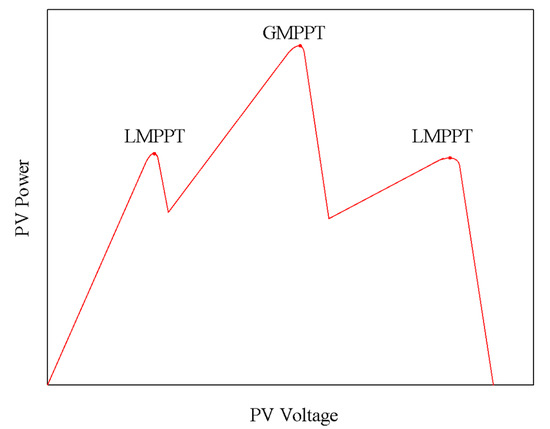 Although typical MPPT algorithm methods perform well considering the uniformly irradiated PV arrangement, their performance can be strongly affected when they operate under partial shading conditions. This is due to the fact that, in most cases, the MPPT techniques mentioned above only reach the local maximum power point (LMPP) instead of the global maximum power point (GMPP) [18].