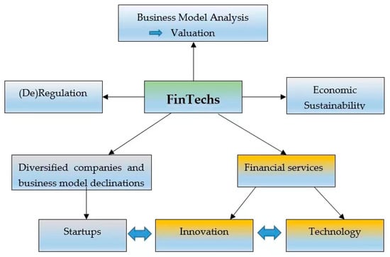 In this section, we undergo a literature review on the FinTech topic to provide a wide range of approaches from some general concepts [9,18,19,20,21], to business model declinations, going from InsurTech [22] to PropTech [23], SupTech [24], RegTech, or services offered (e.g., PayTech - payment systems and processing, P2P loans, open banking, Banking-as-a-Service, etc.) [25], innovative intangibles, like blockchains [26,27], big data [28], or artificial intelligence [29]. FinTech’s regulation and supervisory constraints represent a further debated issue [30]. Regulation is softer than that of hyper-vigilated deposit-collecting banks.
