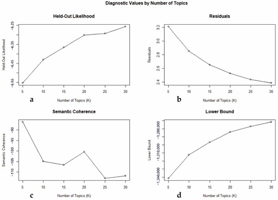 - Roberts, M.E.; Stewart, B.M.; Tingley, D. Stm: R Package for Structural Topic Models. J. Stat. Softw. 2014, 10, 1–40. [Google Scholar] [CrossRef]