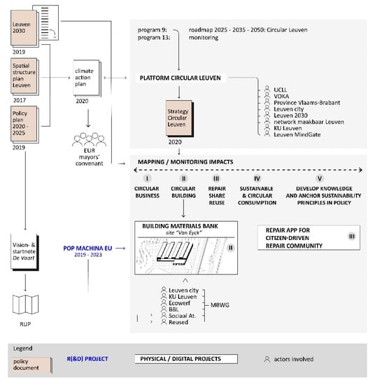 - Mertens, J.; Pauwels, H.; Van Couwenberghe, J. Leuven Circulair. 2020. Available online: https://roadmap.leuven2030.be/pdf/L2030_Roadmap_Programma9.pdf (accessed on 9 December 2020).