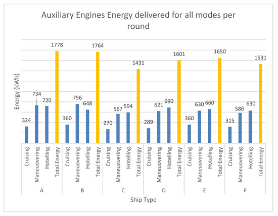 Energy delivered from the AE (kWh) per ship, round trip, and mode.