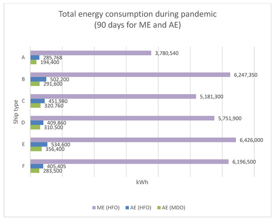 Total energy consumption during the pandemic (90 days) by ME and AE.