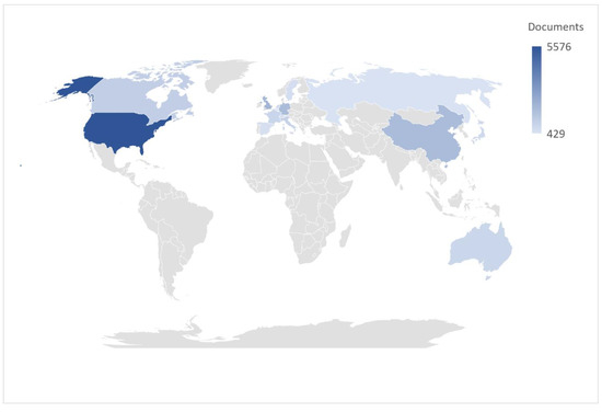 China is actively involved in international cooperation in the field of environmental protection [21,22], and the National Natural Science Foundation of China supports a financially significant number of environmental and conservation projects (Figure 4), which affects the publication activity of Chinese scientists (Figure 5). Today, the European Community (EC) is one of the leaders in environmental cooperation in the European continent, while the environmental policy and activities of the Community are inextricably linked with global activities, in particular those conducted under the auspices of the UN, in the field of environmental protection [23]. Based on the provisions of the founding treaty, EC practice in the field of ecology is based on a special medium-term environmental action program. The Environmental Action Programme sets out specific goals and objectives which the Community can achieve and implement in the light of the current situation [24]. In general, the United States Environmental Protection Agency, as the National Science Foundation and the National Institutes of Health, supports different areas of cooperation in the field of environmental protection [25]. Accordingly, as can be seen in Figure 4, publication activity in the United States on international cooperation and environmental protection is the highest compared to other countries.