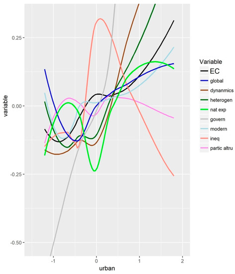 In sum, we maintain our hypothesis that the southern manifestations of such urban features as modernization, globalization, and governance will mediate the influence of urbanization on EC positively, which we expect will be partially explained by its interplay with traditional features.