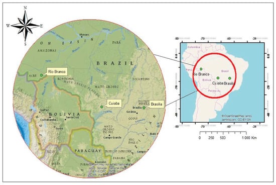 Field work locations: Brasilia (the capital of Brazil), Cuiaba (Mato Grosso) and Rio Branco (Acre). Sources: National Geographic and Open Street Map.