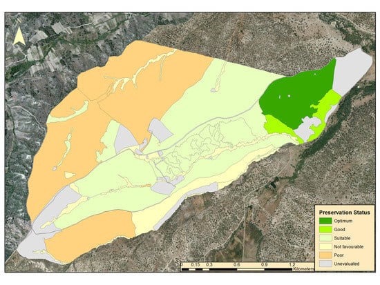 - VV.AA. Bases Ecológicas Preliminares Para la Conservación de los Tipos de Hábitat de Interés Comunitario en España; Ministerio de Medio Ambiente, y Medio Rural y Marino: Madrid, Spain, 2009. [Google Scholar]
