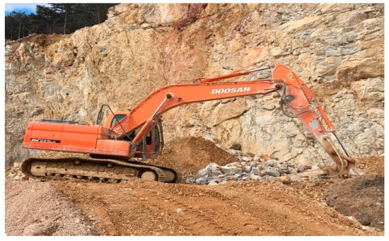 The technical parameters of the new wheel loaders (Figure 6) mean benefits for the mining company in reducing the loading time of the raw material, speeding up the dispatch of the raw material to the crusher. With the original wheel loader, it was necessary to realize six loads quantity, while the new wheel loader has only three loads quantity; this means a 50% reduction in the number of the loads’ quantity. Machinery Park was supplemented by a tracked excavator which is used in the mining process. Changes in the machinery had to be recorded by comparing the technical parameters (Table 3) of the new equipment—tracked excavator. Those technical parameters are very important for mining process.