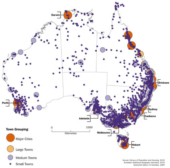 Australian settlements by population size groupings [11].