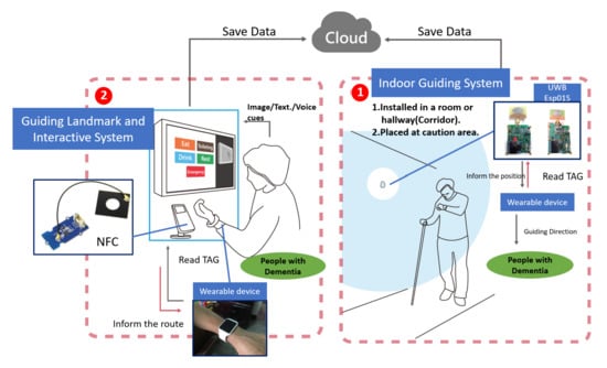 According to this, the main purpose of this study was to develop a home care management and indoor guidance service system that can not only assist cognitive impairment patients with home guidance through a road-finding service, but also be technically positioned within an error range at the centimeter level. Such monitoring and recording of patients’ daily behavior can reduce the human burden on care institutions, and family members can understand patients’ daily behavior at any time.