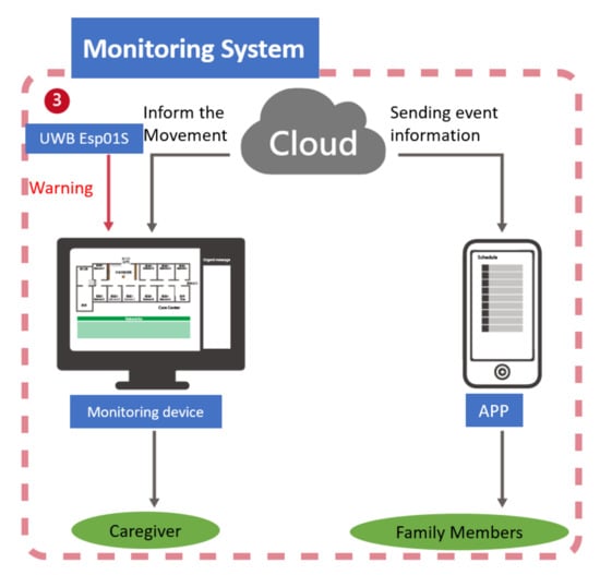 If the patient did not move forward according to the selected purpose or walk in the environment, the caregiver would be informed. The app provided family members of the patient with the patient’s daily schedule. The main screen would list the time and area where the patient had been and the number of times the patient had used the interactive device. The monitoring system used ultra-wide band indoor positioning technology that can improve the precision of indoor static positioning to within 50 cm, and dynamic positioning to within 60 cm. Even where the wall thickness was 18 cm, it can still be accurately positioned. This monitoring system can reduce the burden of care and can be used not only for institutional care but also for home care.