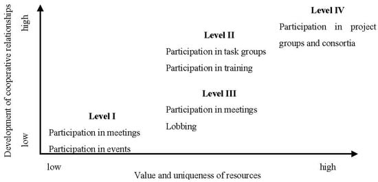 The study showed that the use of these practices by cluster organizations allows access to various types of resources; first of all, relational resources and, consequently, information and knowledge resources. With the transition to the next level of cooperation, the pool of available resources increases—the relationships among cooperating entities strengthen (Table 3) conditioning an increasingly better flow of information and knowledge.