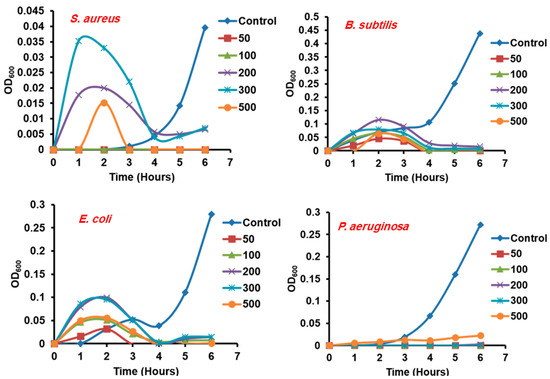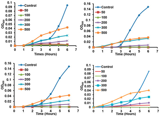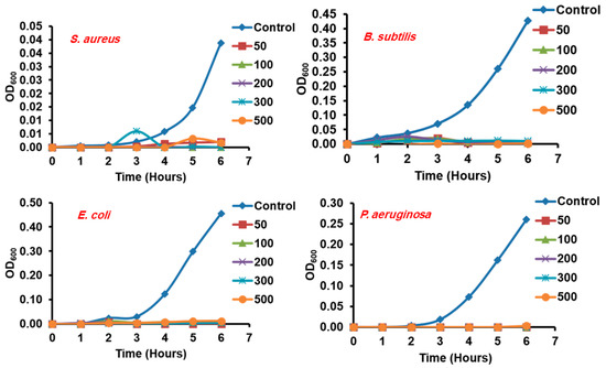 2.5.3. Antimicrobial Activity of Ag NPs through Optical Density