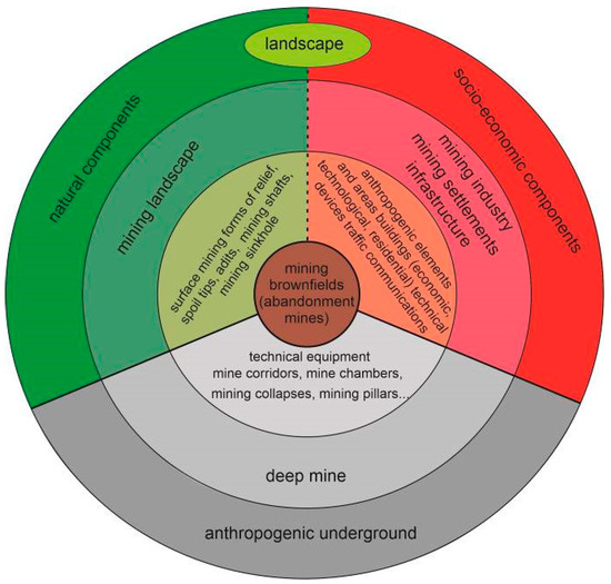These areas are often associated with real or perceived contamination of the landscape and the environment. Devastated and dangerous buildings or various construction objects and facilities (e.g., administrative or residential buildings or technical objects, processing facilities, warehouses, concrete structures, roads) are typical of mining brownfields. Anthropogenic mining forms of relief (surface or subsurface), created either directly during the extraction of minerals or which arose in response to the extraction of minerals, are an integral part of mining brownfields. Typical surface anthropogenic mining forms of relief include heaps, sinkholes, pings, old tunnels and shafts, and sludge ponds, to which unsecured freely accessible underground mining is connected. Therefore, their revitalization in terms of re-use for purposes other than the extraction (or processing) of minerals is necessary. Revitalization of these sites brings new economic uses, including tourism, and several positive factors, such as removing (presumed) environmental burdens, increasing the aesthetic value of the landscape, creating new spaces for construction, creating new jobs, and developing local (rural) communities.
