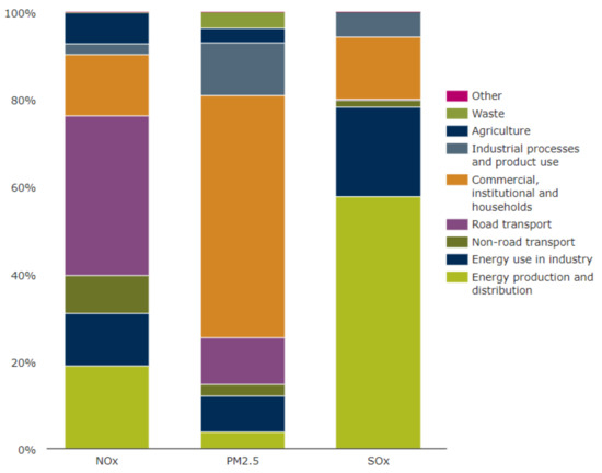 - European Environment Agency (EEA). Emissions of the Main Air Pollutants in Europe. 2019. Available online: https://www.eea.europa.eu/data-and-maps/indicators/main-anthropogenic-air-pollutant-emissions/assessment-6 (accessed on 20 August 2020).