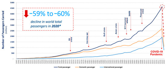 - International Air Transport Association (IATA). Air Passenger Demand Comes to a Standstill Amidst Lockdowns; Air Passenger Market Analysis; IATA: Montreal, QC, Canada, 2020. [Google Scholar]