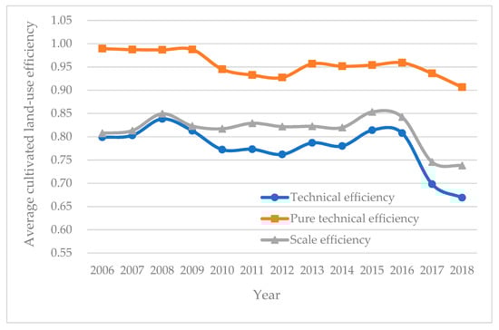 Average cultivated land-use efficiency in Shandong during 2006–2018.