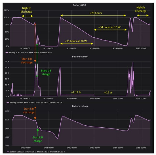 - A lithium-ion battery from LG, model RESU3.3 with 3.3 kWh of total stored energy, 3.3 kW of peak power delivered for 3 s, and a rated voltage of 51.8 V (Figure 4(a4)) [].