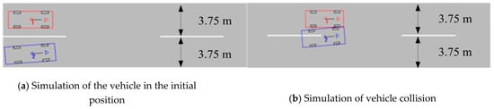 Xiang et al. [34] defined the rear-end collision of the same vehicle. When the collision angle is in the 0°–45° range, the vehicles approach each other, demonstrating a collision between the front of the vehicle and the tail of the preceding vehicle.