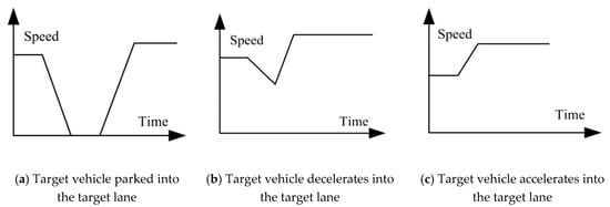 The amount of traffic on the road changes at any time during the day. The speed of the vehicle is also affected by numerous factors, such as traffic volume, driver characteristics, and external interference, hence the continuous fluctuation of speed. Changes in speed caused by external environmental interference when the vehicle shifts lanes also vary. The speed of the target vehicle inserted into the target lane exhibits three main changes.