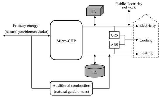 Currently, there is a great diversity of micro-cogeneration technologies available on the market (e.g., Stirling engine, fuel cells, microturbines, internal combustion engines, Rankine Organic Cycle) that can harness primary energy resources, both conventional and renewable [4,5,6,7,8,9]. There is also a tendency for more than one primary energy source available to be used on a single site [10,11,12].