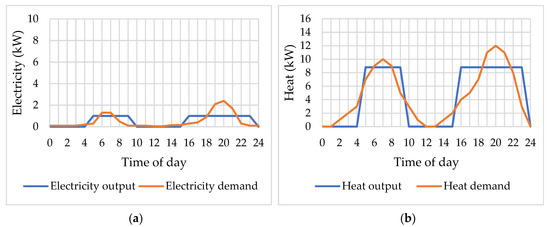 The energy balancing problem is the main challenge for the effective application of micro-CHP in a residential context. The addition of a heat storage system will increase the flexibility of a micro-cogeneration system [33,34,35]. The energy demand of residential buildings (heating, cooling, and electricity for lighting and appliances) has great importance in the sizing of cogeneration units [36,37,38].
