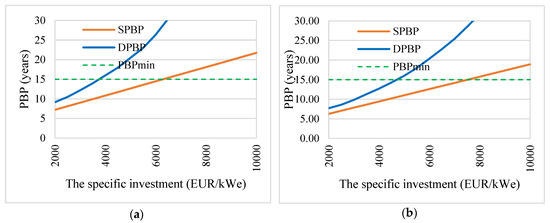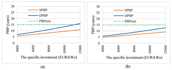 The payback period (PBP): (a) the Stirling engine CHP; (b) the ORC CHP (50% share of solar energy).