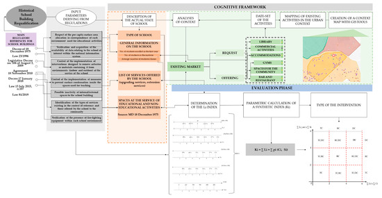 With reference to the Constitutional Court (judgments 62/2013, 284/2016 and, lastly, 71/2018), within the discipline on school buildings “more subjects intersect, such as “territorial governance”, “energy” and “civil protection”. Thus, the proposed evaluation methodology, as specified in the following paragraph, aims to jointly consider regulatory aspects, school building features, and characteristics of the territory.