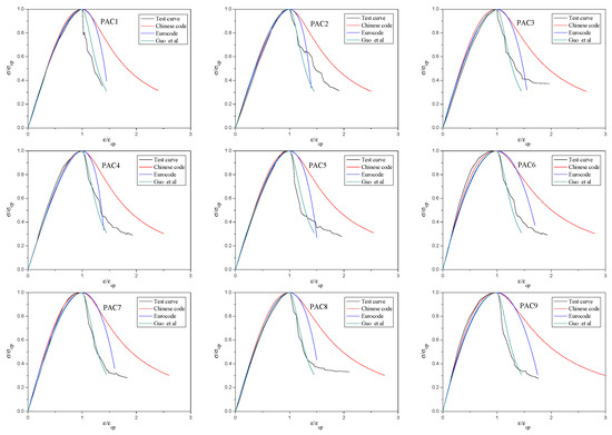 Comparison of stress–strain curves of PAC obtained from existing stress–strain models.